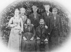 Familie Terhorst 1877 (Silberhochzeit): (v.l.n.r.): Helene (Lena) Terhorst, Bernard Eduard Gisbert Terhorst, Gertrud Terhorst, geb. Hülkenberg, Ferdinand Terhorst, Heinrich Terhorst, Heinrich Terhorst, Johann Terhorst